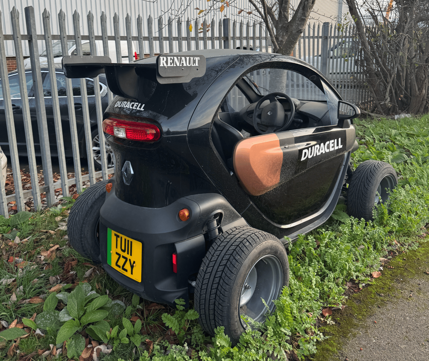 I noticed this Twizy abandoned(?) on the side of the road on an industrial estate. Initially it stood out for having wide wheels (relatively speaking) but as I got closer I noticed the rear wing and the Duracell graphics. Hard to get too excited about a Twizy, but I thought it was fun, and done in good humour. In case you’re wondering, they’re available from around £4,500 on Autotrader.